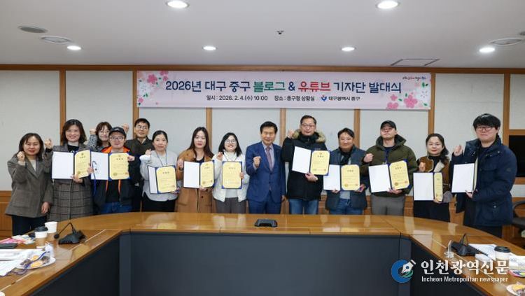 [인천광역신문] 관리자 기자 | 대구 중구는 4일 구청 상황실에서 ‘2026년 블로그·유튜브 기자단 발대식’을 개최하고, 구정 홍보 활성화를 위한 본격적인 활동에 들어갔다.