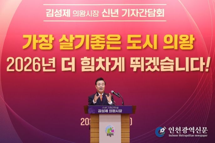 [인천광역신문] 관리자 기자 | 김성제 의왕시장이 5일 시청 대회의실에서 2026년 신년 기자간담회를 열고 민선8기 의왕시 주요성과와 2026년 시정 운영방향에 대해 설명하는 시간을 가졌다.