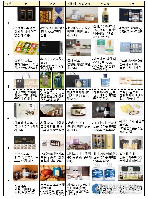 최근 적극적으로 판로 확대를 모색하고 있는 콩 가공제품을 구성해 농가와의 상생을 도모했고, 청년 농업인이 생산한 제품을 소개하여 활기차고 미래지향적인 농업․농촌의 비전을 제시했다. 아울러, 대한민국 식품명인의 노하우가 담긴 제품과 품평회 등을 통해 그 우수성을 인정받은 우리술을 엄선하여 명절 선물의 품격과 신뢰도를 높였다.