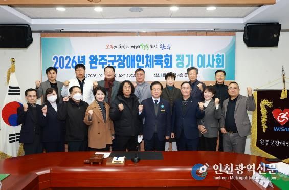 [인천광역신문] 관리자 기자 | 완주군 장애인 체육회가 지난 5일 완주군청 4층 중회의실에서 2026년 완주군 장애인체육회 정기 이사회를 열고, 2025년도 사업결산 및 2026년 사업계획에 대한 승인을 진행했다.