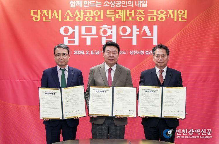 [인천광역신문] 관리자 기자 | 당진시는 6일 당진시청 접견실에서 오성환 당진시장과 함종덕 하나은행 충남북영업본부 지역대표, 조소행 충남신용보증재단 이사장이 참석한 가운데 소상공인 특례보증 금융지원을 위한 업무협약을 체결했다고 밝혔다.