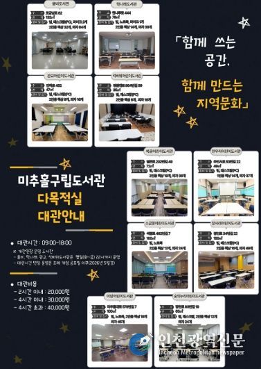 [인천광역신문] 관리자 기자 | 인천 미추홀구가 주민들의 문화 활동과 커뮤니티 활성화를 위해 구립도서관 다목적실 대관 운영을 확대한다.