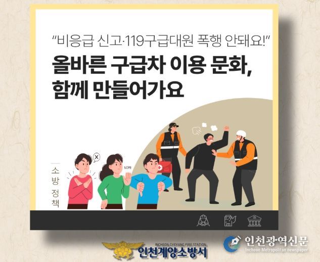 계양소방서는 심정지, 뇌졸중, 심근경색, 중증외상 등 생명이 위급한 중증응급환자에게 신속한 구급서비스를 제공하기 위해 단순 치통·감기 등 외래진료 목적의 이송 요청이나 단순 주취자 신고는 가급적 자제해 줄 것을 강조했다.