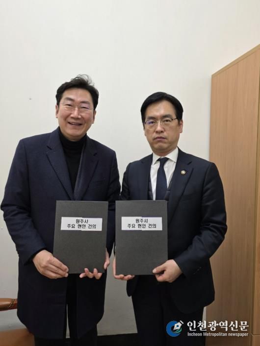 [인천광역신문] 관리자 기자 | 원강수 원주시장은 9일 국회소통관 스마트워크센터에서 김민재 행정안전부 차관을 만나 원주시 주요 현안에 대한 정부 차원의 지원과 협조를 요청했다.