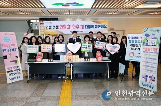 윤석준 동구청장은 “명절을 앞두고 실시한 이번 캠페인이 직원들에게 청렴의 가치를 다시 한번 되새기는 계기가 되길 바란다”며 “앞으로도 일상 속에서 체감할 수 있는 다양한 청렴 활동을 통해 신뢰받는 공직문화를 만들어 나가겠다”고 했다.