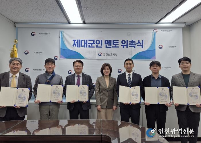 [인천광역신문] 관리자 기자 | 국가보훈부 인천보훈지청 제대군인지원센터는 2월 10일 정부인천지방합동청사에서 먼저 사회에 진출하여 성공한 제대군인을 분야별로 멘토로 선정하는 “2026년 제대군인 멘토 위촉식 및 간담회”를 진행했다.