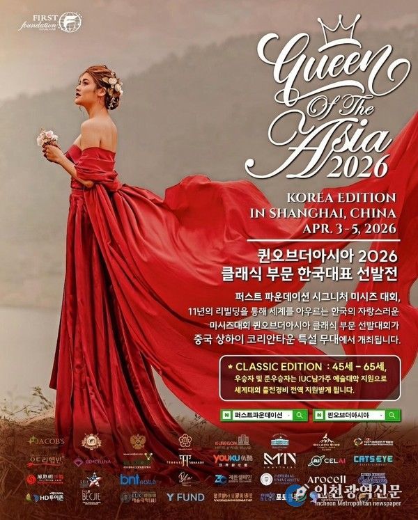[인천광역신문] 관리자 기자 | 비영리문화예술단체 퍼스트파운데이션이 주관하는 시그니처 미시즈 대회 ‘미시즈 퍼스트 퀸오브더아시아(Queen of the Asia)’ 2026 정규 에디션이 한국 예심을 거쳐 필리핀과 중국에서 이원화된 본선을 진행할 예정인 가운데, 대회의 개최 취지와 방향성에 대한 관심이 높아지고 있다.