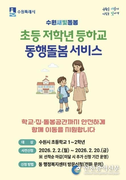 [인천광역신문] 관리자 기자 | 수원특례시가 ‘초등 저학년 등하교 동행돌봄서비스’ 사전 신청 기간을 운영한다.