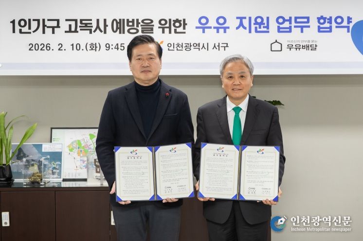 [인천광역신문] 관리자 기자 | 인천 서구는 지난 10일 (사)어르신의안부를묻는우유배달(이사장 호용한)과 함께 독거노인 가구 고독사 예방과 지역사회 복지 안전망 강화를 위한 업무협약(MOU)을 체결했다.