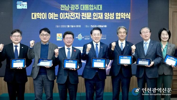 [인천광역신문] 관리자 기자 | 전라남도는 11일 광양시·나주시, 광주·전남 주요 대학과 이차전지 전문인재 양성을 위한 업무협약을 하고, 광양만권 이차전지 특화단지 유치와 조성에 필요한 인력 육성에 협력하기로 했다.