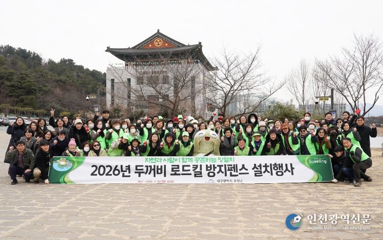 [인천광역신문] 관리자 기자 | 대구 수성구는 지난 10일 전국 최대 두꺼비 집단 산란지인 욱수동 망월지 일대에서 ‘두꺼비 로드킬 방지 펜스 설치’ 행사를 실시했다.
