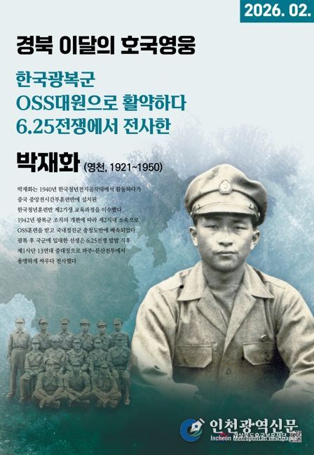 [인천광역신문] 관리자 기자 | 경상북도호국보훈재단은 2026년 ‘경북 이달의 호국영웅’ 2월의 주인공으로 영천 출신 박재화 선생(朴載華, 1921~1950)을 선정했다고 밝혔다.