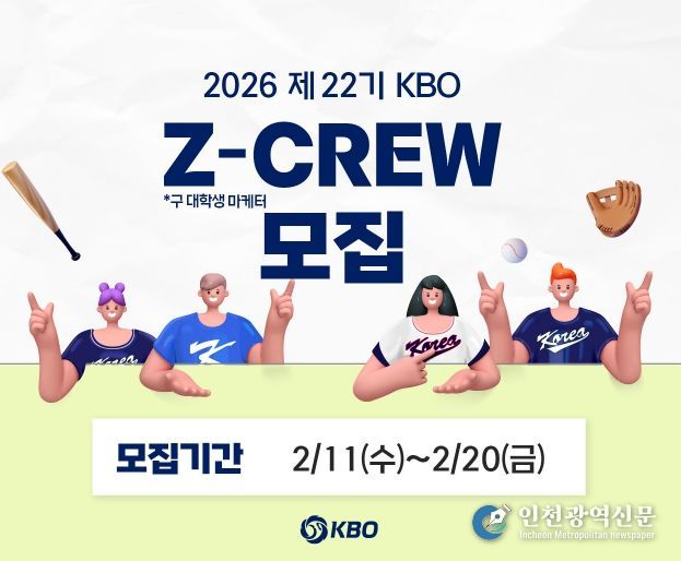 [인천광역신문] 관리자 기자 | KBO가 2월 11일(수)부터 2026 제 22기 KBO Z-CREW(제트크루)를 모집한다.