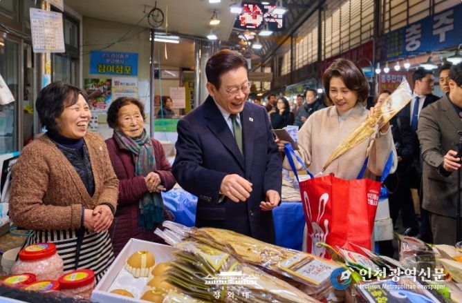 [인천광역신문] 관리자 기자 | 이재명 대통령과 김혜경 여사는 오늘 낮, 설 명절을 앞두고 충북 충주시에 위치한 무학시장을 찾아 지역 세밑 물가를 점검하고 상인들을 만나 현장 의견을 청취했다.