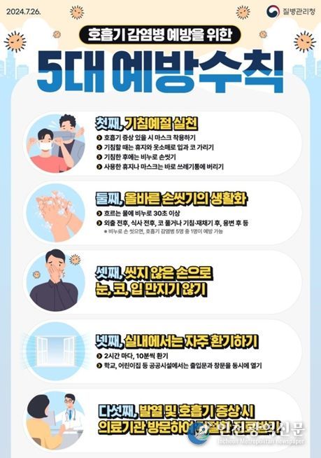 [인천광역신문] 관리자 기자 | 인천광역시는 설 연휴 기간 이동과 모임이 늘어남에 따라 시민들이 건강하고 안전한 명절을 보낼 수 있도록 호흡기 감염병 예방수칙 준수를 당부했다.