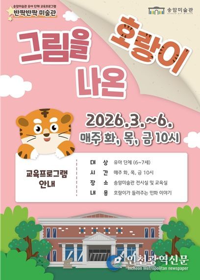 [인천광역신문] 관리자 기자 | 인천광역시 송암미술관은 오는 3월부터 6월까지 6~7세 유아 단체를 대상으로 교육 프로그램 '그림을 나온 호랑이'를 운영한다고 밝혔다.