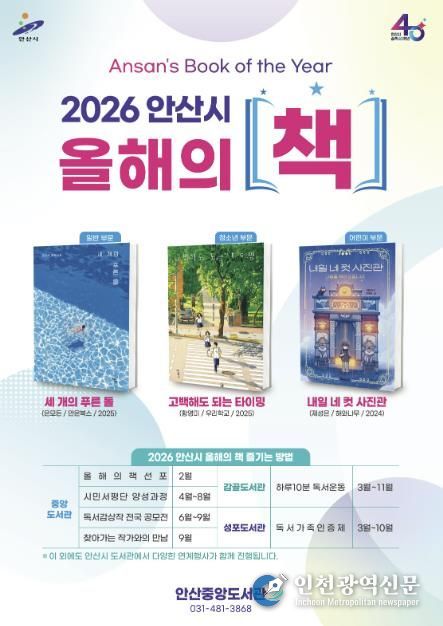 [인천광역신문] 관리자 기자 | 안산시는 ‘2026년 올해의 책’을 선정하고, 시민들의 독서 활동을 장려하기 위한 홍보와 연계사업을 본격 시행한다고 12일 밝혔다.