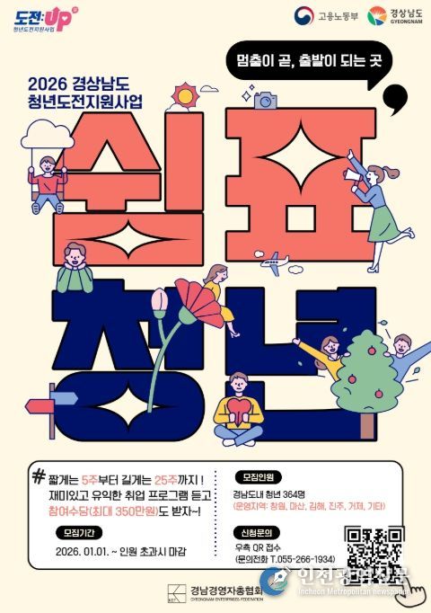 [인천광역신문] 관리자 기자 | 경상남도는 2026년 경상남도 청년일자리 사업 참여 청년과 기업을 2월 9일부터 예산 소진 시까지 모집한다고 밝혔다.