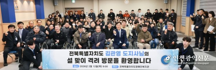 도는 12일 설 명절을 앞두고 전북장애인복지관을 방문해 공적 항공마일리지를 활용해 마련한 생활필수품을 전달하고, 복지관 종사자와 이용 장애인들을 격려했다.