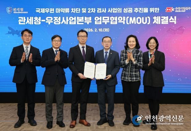 [인천광역신문] 관리자 기자 | 관세청과 과학기술정보통신부 우정사업본부(본부장 직무대리 곽병진)는 2월 10일 서울세관에서 국제우편을 통한 마약류 반입을 원천 차단하기 위해 '국제우편 마약류 차단 및 2차 검사 사업의 성공 추진을 위한 업무협약(MOU)'을 체결했다.