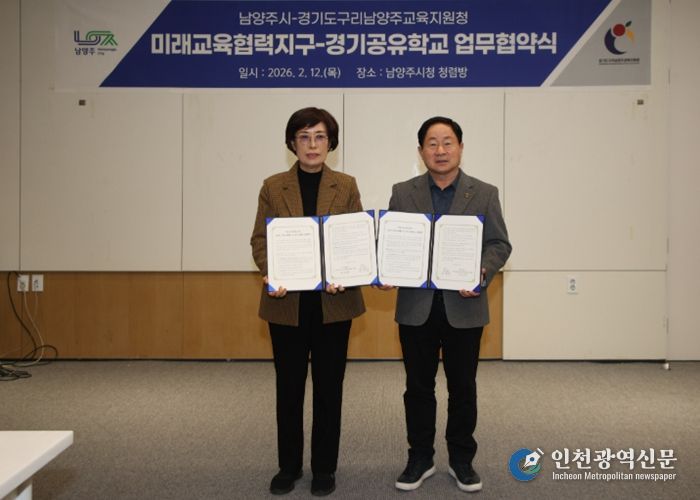 [인천광역신문] 관리자 기자 | 남양주시는 12일 시청 청렴방에서 구리남양주교육지원청과 ‘지역교육협력을 위한 남양주시 미래교육협력지구-경기공유학교 업무협약’을 체결했다고 전했다.