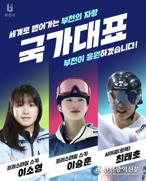 [인천광역신문] 관리자 기자 | 부천시는 프리스타일 스키와 사이클 종목에서 활약 중인 이승훈, 이소영, 최태호 선수가 국제대회에서 뛰어난 기량을 선보이며 부천 체육의 저력을 알리고 있다고 밝혔다.