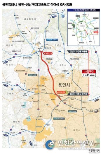 [인천광역신문] 관리자 기자 | 용인특례시는 ‘용인~성남 고속도로 민간투자사업’이 한국개발연구원(KDI) 적격성 조사를 통과했다고 13일 밝혔다.