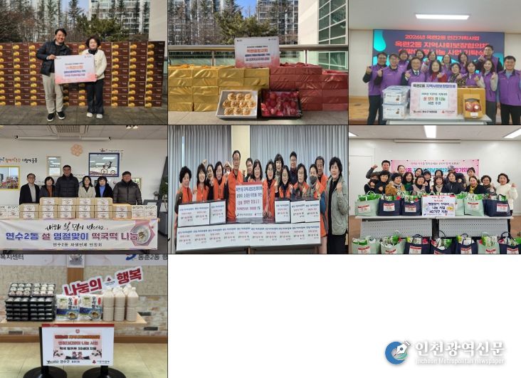또 연수2동 주민자치회, 통장자율회, 지역사회보장협의체, 새마을부녀회, 자율방범대, 자율방재단으로 구성된 자생단체연합회가 연수2동의 경로당 8곳을 방문해 어르신들의 건강을 기원하는 ‘설맞이 경로당 떡국떡 나눔 행사’를 진행했다.