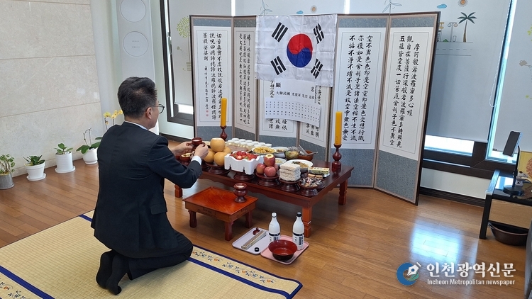 < 집에서 무후광복군의 제사를 올리고 있는 김선홍 상임대표>