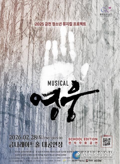 [인천광역신문] 관리자 기자 | 금천구는 금천 청소년 뮤지컬 프로젝트 ‘영웅’이 오는 28일 금나래아트홀 대공연장에서 개최된다고 밝혔다.
