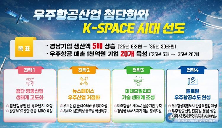 [인천광역신문] 관리자 기자 | 경상남도가 대한민국의 글로벌 우주항공 5대 강국 도약을 견인하기 위한 핵심 전략을 추진한다.