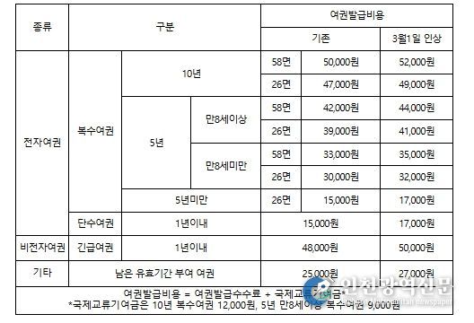[인천광역신문] 관리자 기자 | 2026년 3월 1일부터 여권발급수수료가 2천원 인상된다.
