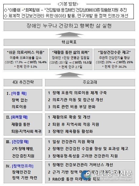 [인천광역신문] 관리자 기자 | 정부는 제27차 장애인정책조정위원회 심의·의결을 거쳐 “장애인 누구나 건강하고 행복한 삶 실현”을 목표로 하는 '제1차 장애인 건강보건관리 종합계획(2026~2030)'을 확정·발표했다.