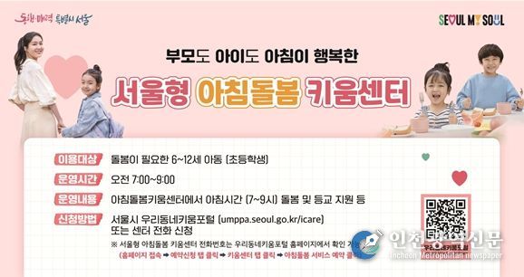 [인천광역신문] 관리자 기자 | 서울시는 부산 화재 사고 이후 초등학생 자녀를 둔 맞벌이 가정의 돌봄 공백을 해소하고 안전사고 예방을 위해 출근 시간부터 퇴근 후 최대 밤 12시까지 이용할 수 있는 ‘야간 연장 돌봄’을 52개소에서 새롭게 시작하고, 이용자 만족도가 높았던 ‘서울형 아침돌봄 키움센터’를 30개소로 확대하여 상시 운영한다.