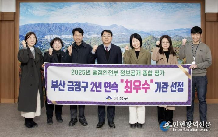 [인천광역신문] 관리자 기자 | 부산 금정구가 행정안전부 주관 녩년 정보공개 종합 평가’에서 2년 연속 ‘최우수’기관으로 선정되며 투명 행정 선도 지자체로서의 입지를 단단히 굳혔다.