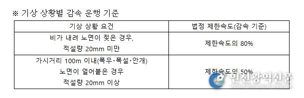 [인천광역신문] 관리자 기자 | 경찰청은 비・눈・안개 등 기상 악화 시 발생하는 대형 교통사고를 예방하기 위해 서해대교(3. 1.(일)) 등 주요 구간에서 기상 상황에 맞춘 속도 단속을 본격화한다.