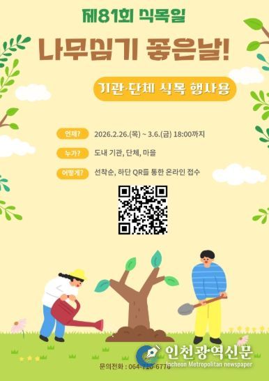 제81회 식목일 전후로 전 도민과 함께하는‘1도민 1그루 나무심기 초록 릴레이’캠페인 확산을 위해 도내 기관·단체와 생애주기별 해당 도민을 대상으로 6,000여 그루의 묘목을 무료로 공급한다.