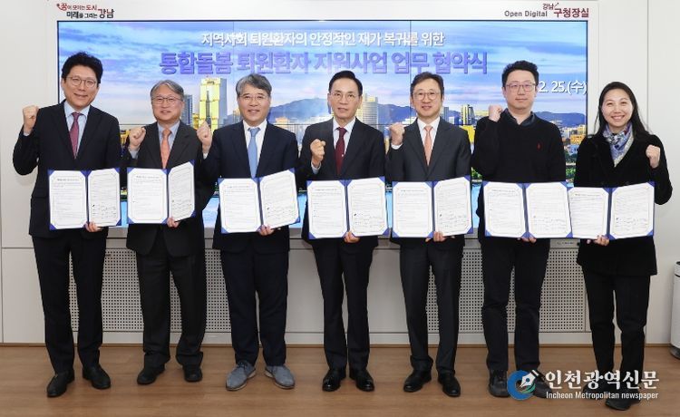 [인천광역신문] 관리자 기자 | 꿈이 모이는 도시, 미래를 그리는 강남구가 퇴원 이후 돌봄 공백을 줄이고 지역사회 중심의 돌봄 체계를 강화하기 위해 2월 25일 구청에서 관내 6개 의료기관과 '통합돌봄 퇴원환자 지원사업' 추진을 위한 업무협약(MOU)을 체결했다. 협약 기관은 삼성서울병원, 연세대학교의과대학 강남세브란스병원, 강남베드로병원, 나누리병원, 메드렉스병원, 강남구립행복요양병원이다.