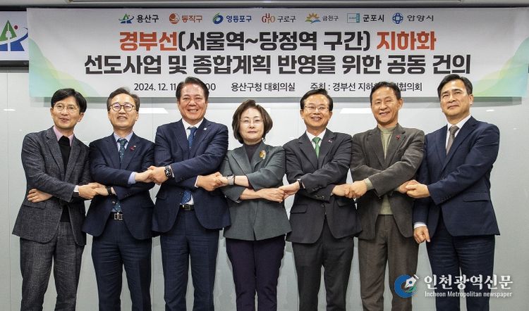 [인천광역신문] 관리자 기자 | 경부선 지하화 추진협의회가 오는 3월 4일 용산역 일대에서 ‘철도지하화 종합계획 발표 촉구’를 위한 공동성명서를 발표한다. 협의회에는 서울 용산구·동작구·영등포구·구로구·금천구와 경기 안양시·군포시 등 7개 기초지자체가 참여하고 있다.