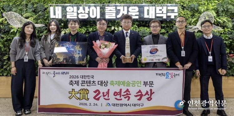 구는 이번 성과를 바탕으로 오는 4월 4~5일 이틀간 대청공원 일원에서 ‘2026 대덕물빛축제’ 메인 행사를 개최한다. 3년 연속 수상의 품격에 걸맞은 한층 강화된 프로그램을 선보일 예정이다.