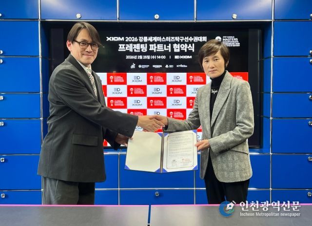 [인천광역신문] 관리자 기자 | 2월 25일 강릉시와 조직위원회는 2026 강릉세계마스터즈탁구선수권대회 개막 D-100일을 기해 대한민국을 대표하는 글로벌 탁구용품 브랜드 엑시옴과 프레젠팅 파트너 계약을 체결했다고 밝혔다.