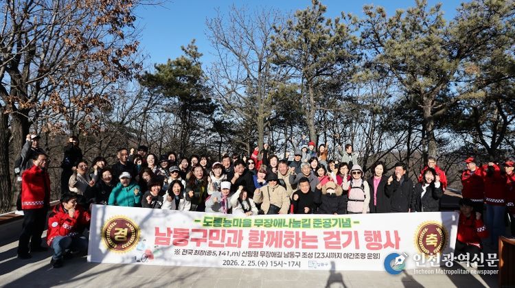 남동구는 지난 25일 장애인과 비장애인, 노약자 등 지역주민 100여 명과 함께 도룡뇽마을 무장애나눔길 준공 기념 걷기 행사를 가졌다고 26일 밝혔다.
