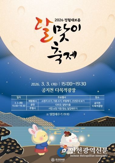 춘천문화원은 3일 오후 3시부터 7시 30분까지 공지천 다목적광장에서 ‘2026년 정월대보름 달맞이 축제’를 연다.