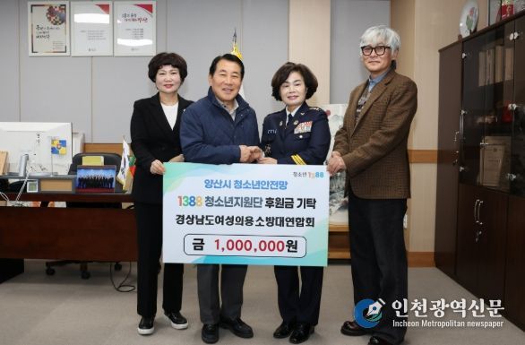 [인천광역신문] 관리자 기자 | 경상남도 여성의용소방대연합회(회장 김복야)는 27일 양산시를 방문해 후원금 100만원을 양산시청소년상담복지센터 1388청소년지원단에 기탁했다.