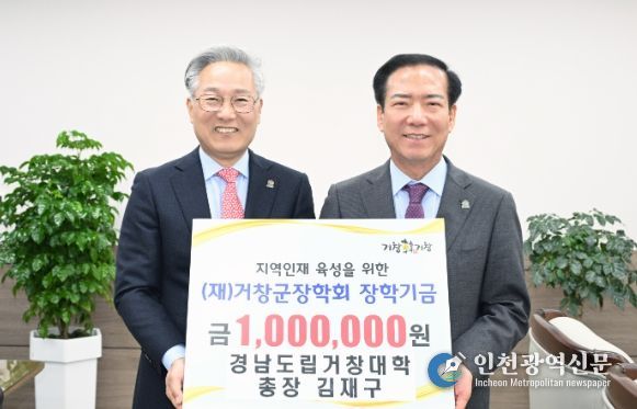 [인천광역신문] 관리자 기자 | (재)거창군장학회는 27일 경남도립거창대학 김재구 총장이 지역인재 양성을 위한 장학금 100만 원을 기탁 했다고 밝혔다.