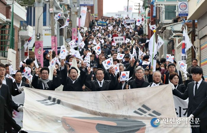 기념식에 이어 열린 만세운동 재현 시가행진은 인천 최대 규모의 참여형 역사 재현 행사로 참여 규모와 콘텐츠 면에서 지난 행사보다 한층 더 확대되어 주목을 받았다.