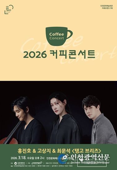 [인천광역신문] 관리자 기자 | 인천의 대표 마티네 콘서트인 인천문화예술회관의 '커피콘서트'가 오는 3월 18일 오후 2시, 2026년 첫 무대를 선보이며 여정의 시작을 알린다.