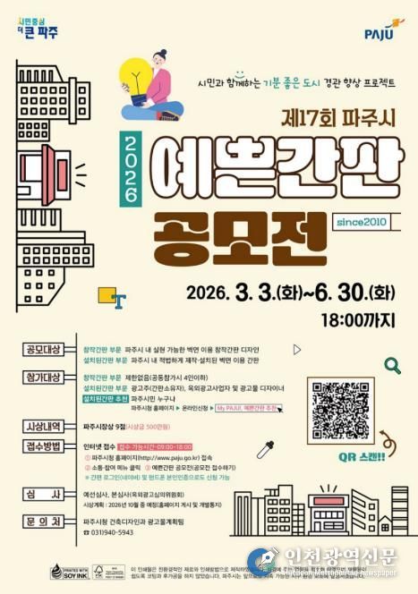 [인천광역신문] 관리자 기자 | 파주시는 6월 30일까지 ‘제17회 파주시 예쁜간판 공모전’을 위한 참여 신청을 받는다.