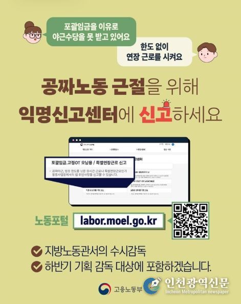 공짜노동 근절을 위해 익명신고센터에 신고하세요.