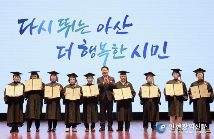 [인천광역신문] 관리자 기자 | 아산시는 3일 오전 시청 시민홀에서 열린 월례모임에서 평생학습관이 운영한 3년 과정의 초등학력인정 문해교육 프로그램을 이수한 만학도 졸업생 10명에게 표창을 수여하고, 초등학교 졸업 학력 취득을 함께 기념했다.